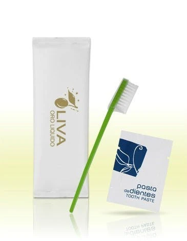Zahnpflegeset 2-Teilig, bestehend aus Zahnbürste und Zahnpasta in der Tube.